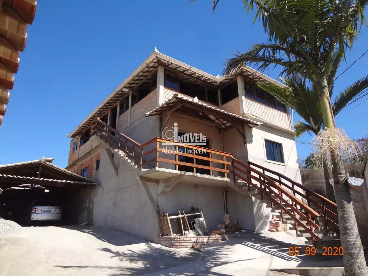 ÁREA EXTERNA TÉRREA: Pátio todo cimentado, duas vagas de garagem com telhado colonial com possibilidade de expansão, um cômodo que pode ser utilizado como Ponto Comercial, canil, duas Palmeiras, PISCINA e mais um banheiro.