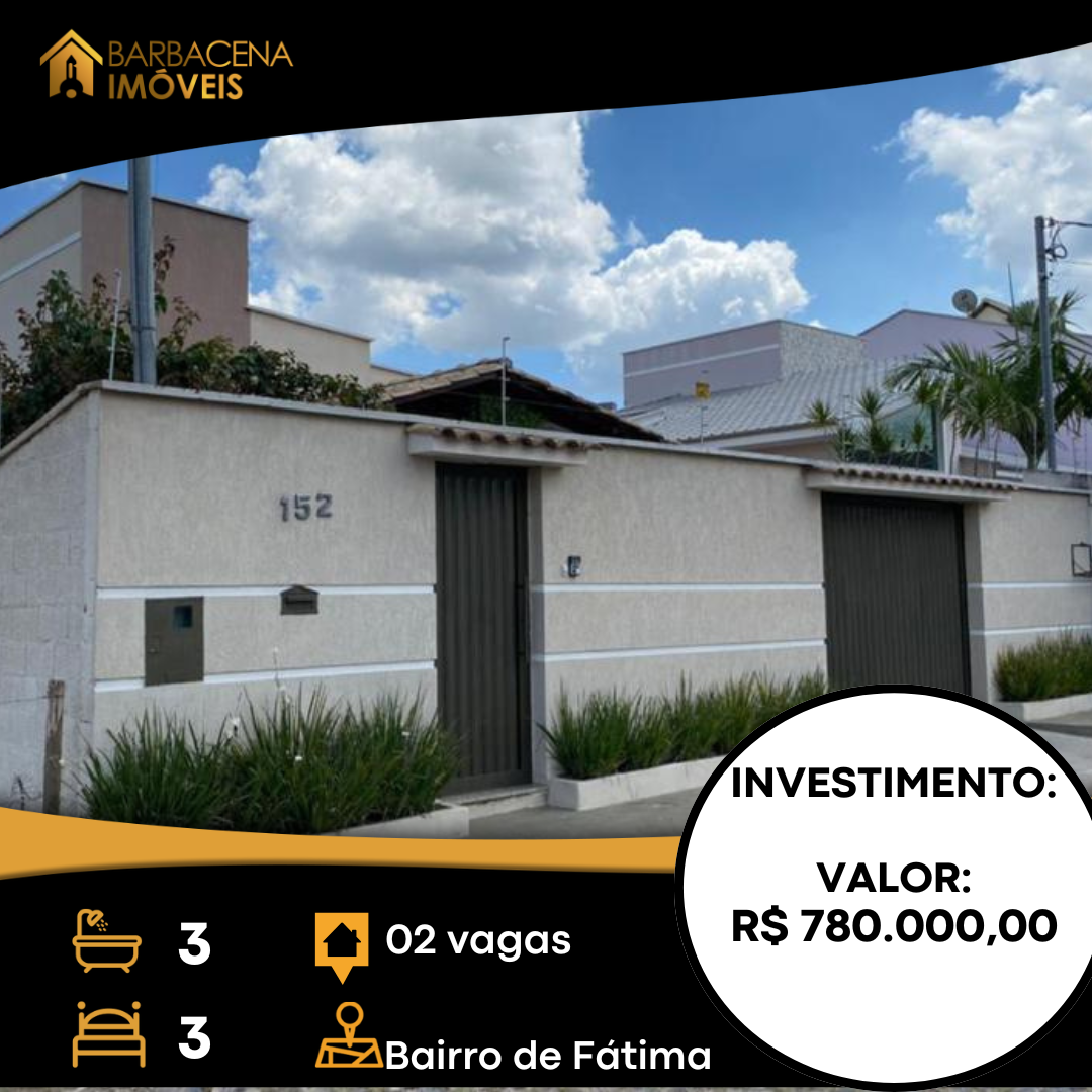 CASA À VENDA NO BAIRRO DE FÁTIMA, EM BARBACENA/MG.