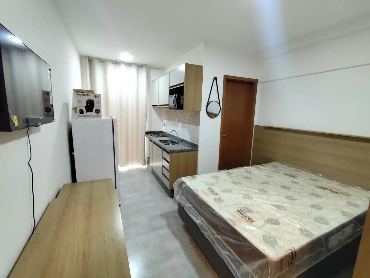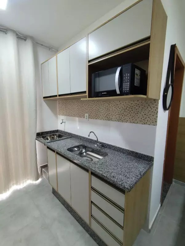 Studio mobiliado com aproximadamente 20m². Quarto, cozinha planejada e banheiro. TODO MOBILIADO, COMPLETO. Prédio com lavanderia, bicicletário, 02 elevadores e portaria 24h. Conta com espaço coworking, espaço Gourmet, ampla academia, piscina na cobertura e Rooftop com vista panorâmica.