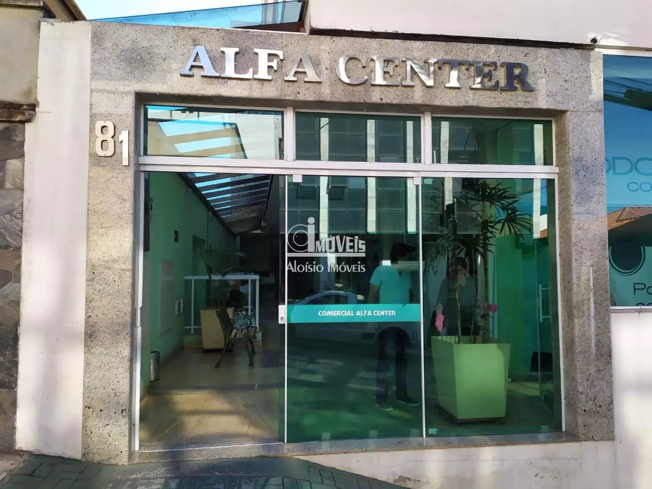 Sala ampla com banheiro. Toda a extensão das janelas de vidros temperados e pisos de porcelanato. Sala 17 com 87,22 m² . Primeira locação. Prédio com elevador para cadeirantes e idosos.